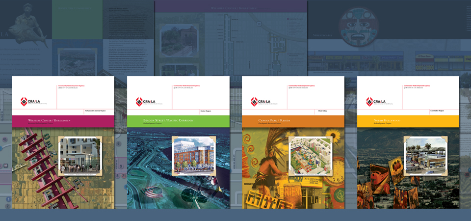 Community Redevelopment Agency of the City of Los Angeles: Design & development of brochures for 14 redevelopment areas, 2003 - 2008.